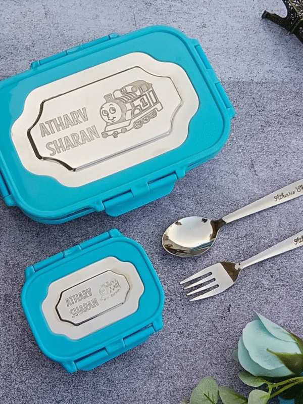 Steel Air Tight Lunch Box with Custom Name & Cartoon